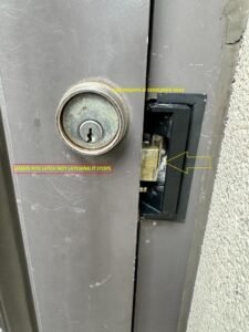 • Misaligned strike preventing proper latching